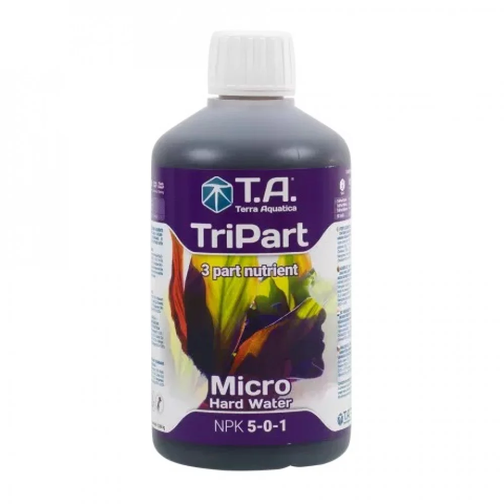 Tripart Micro for hard water is one of the three components of the Tripart fertilizer range from the renowned French company Terra Aquatica. (Name before rebranding as GHE Flora Series Micro).