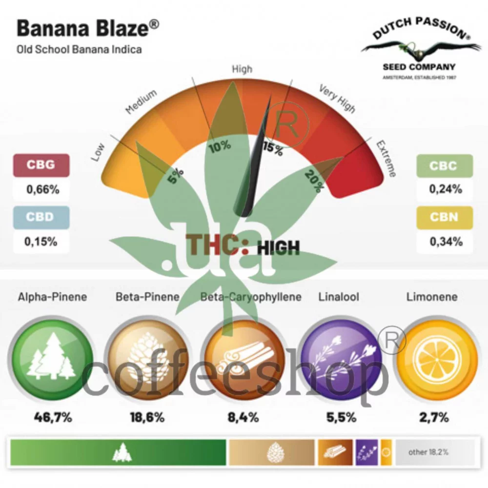 Banana Blaze is an exceptional feminised strain developed by the legendary Dutch seed bank Dutch Passion, one of the pioneers in global cannabis breeding. Based on carefully selected old-school genetics, this indica-dominant hybrid brings together an amazing banana-fruity aroma, high yield, strong relaxing effects, and outstanding ease of cultivation.