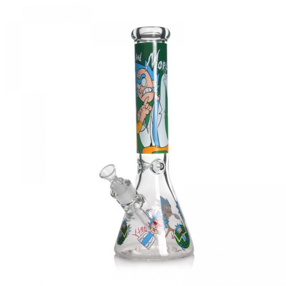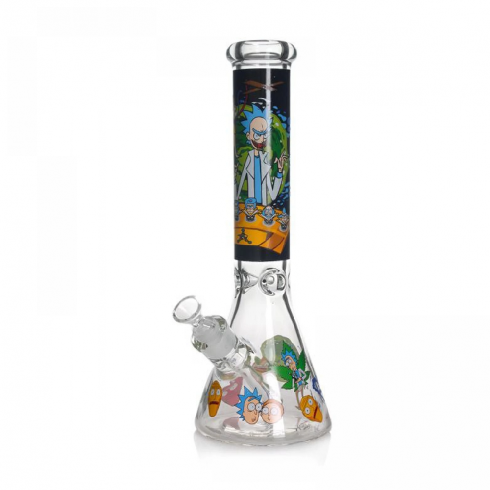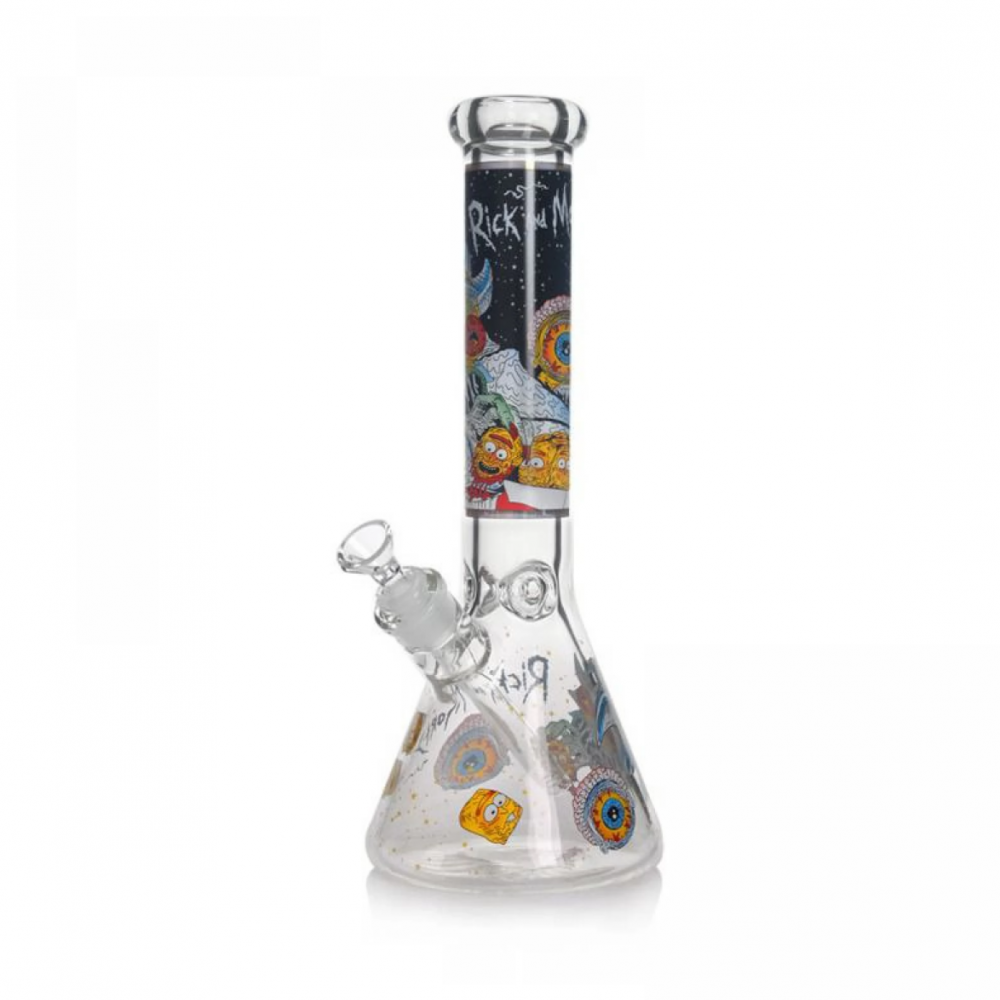 Бонг «Rick-N-Morty» — это стильный и функциональный классический бонг формата Beaker (в форме лабораторной мензурки), изготовленный из прочного и термостойкого боросиликатного стекла толщиной 5 мм.
