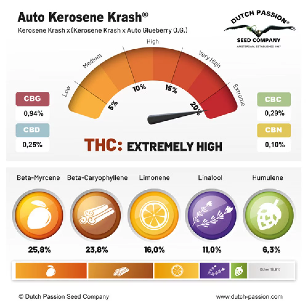 Сорт Auto Kerosene Krash от Dutch Passion имеет более фруктовые нотки, чем фотопериодическая версия. Оба сорта мощные и визуально привлекательные.