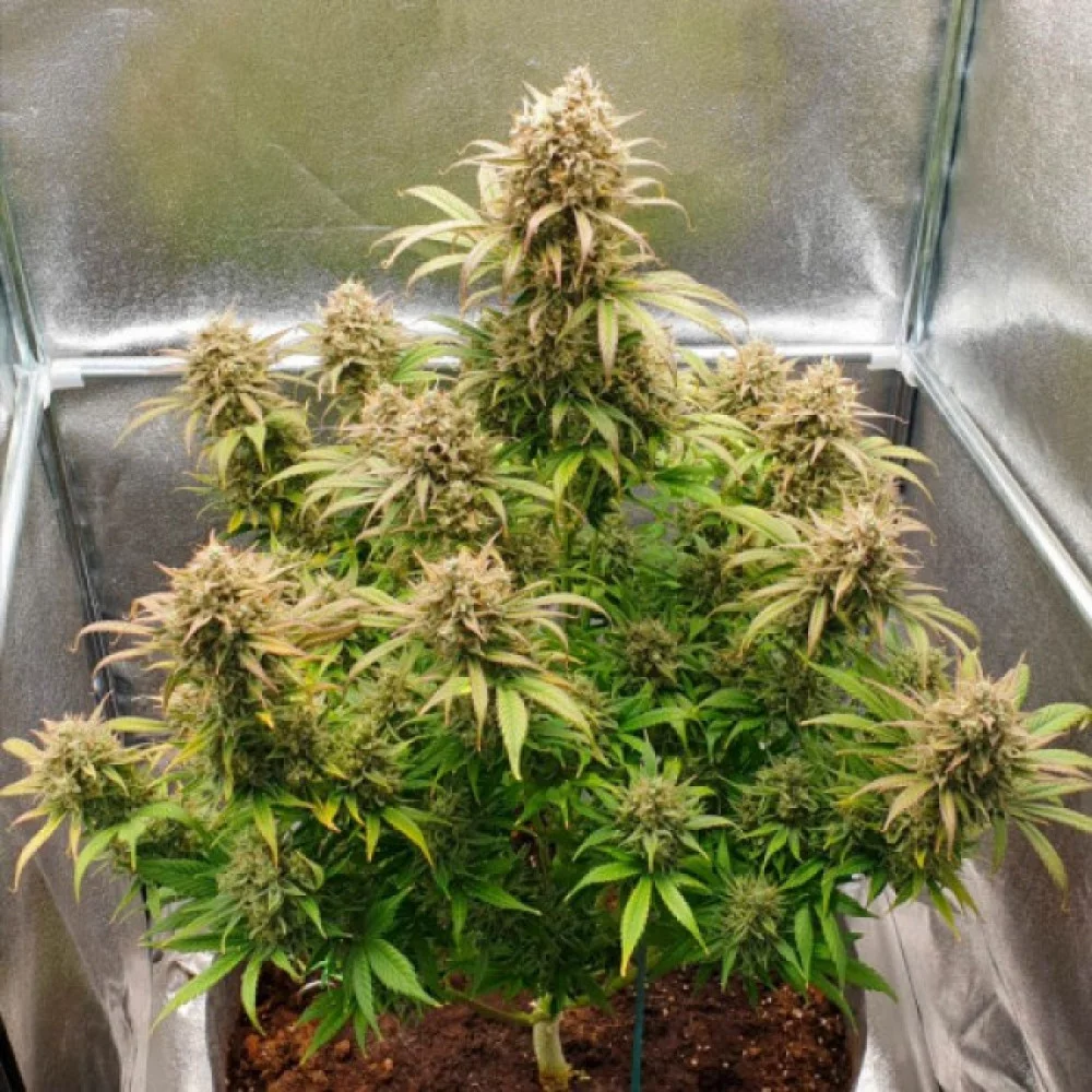 Zkittlez Auto - это компактное растение, высота которого обычно не превышает 1 метра. Оно имеет ярко выраженный центральный колос и хорошо развитые боковые ветви. В процессе цветения формируются смолистые, плотно уложенные соцветия. При оптимальных условиях выращивания можно получить урожайность до 450–500 г/м². Сорт отличается хорошими междоузлиями и высокой устойчивостью, что делает его подходящим для начинающих гроверов и интересным проектом для опытных.