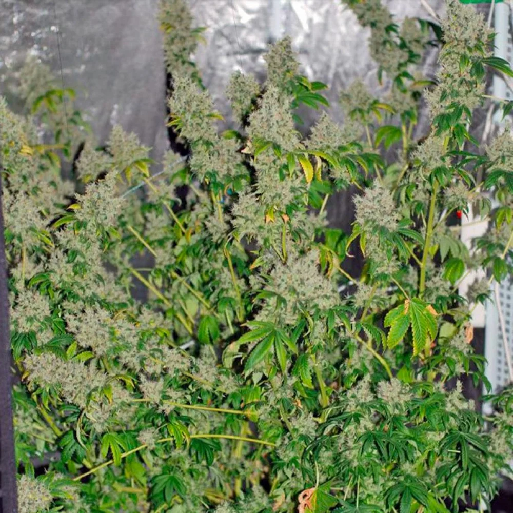 В фазе цветения растение достигает внушительных размеров и образует крупные цветочные гроздья. Производители могут значительно повысить урожайность, применяя такие методы, как SCRoG или LST.