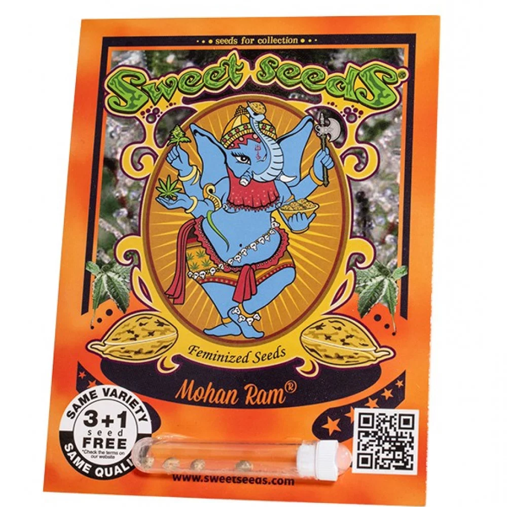 Он созревает за восемь недель и готов к концу сентября - началу октября. В закрытом грунте с одного квадратного метра можно собрать до полукилограмма шишек Sweet Seeds Mohan Ram. В условиях открытого грунта такого результата может достичь одна елка. Mohan Ram содержит до 21 процента ТГК и более 1,4 процента CBD, в результате чего сильные и длительные психоактивные эффекты при употреблении. Он обеспечивает полное расслабление, восстанавливает силы после переутомления и способствует уверенности и спокойствию.