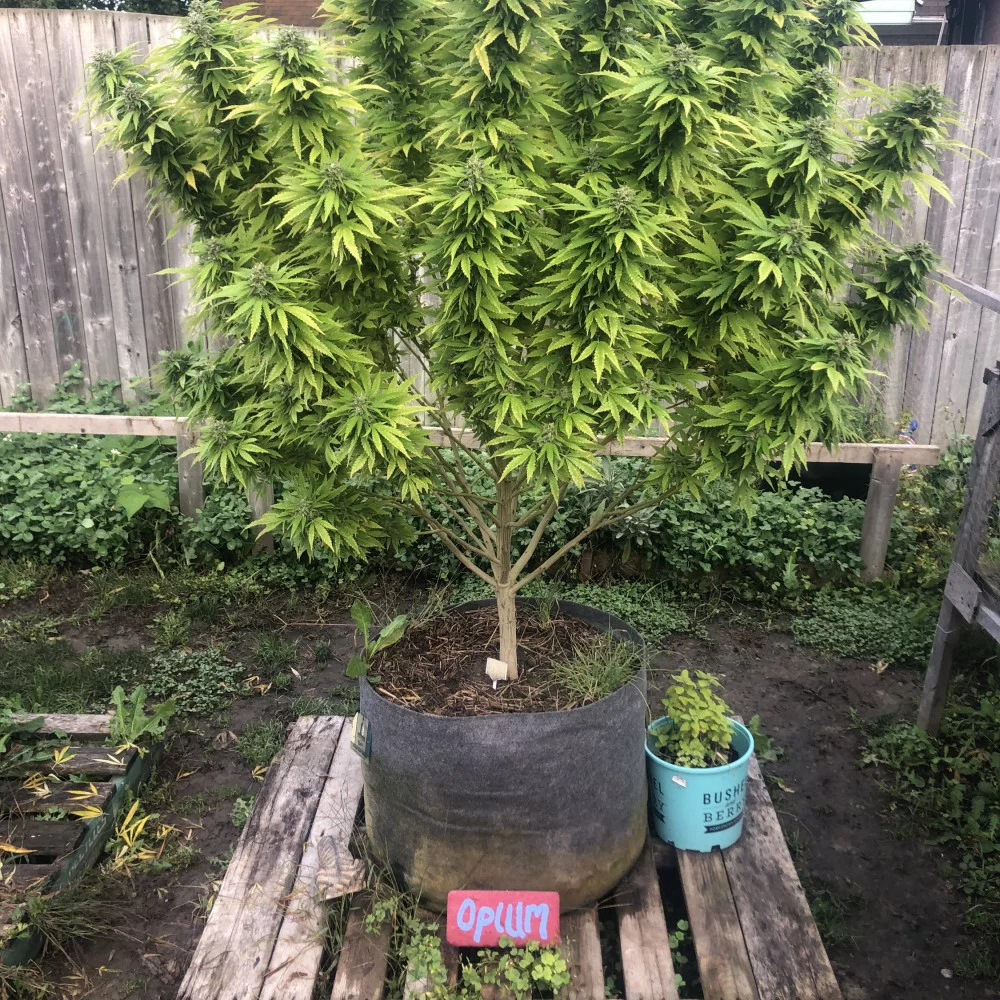 Сорт развивается мощными кустами с крепкими ветками, но тяжелые смолистые шишки могут требовать дополнительной поддержки. В период созревания Opium выделяет интенсивный землисто-фруктовый аромат с яркими хвойными и ягодными нотами.
