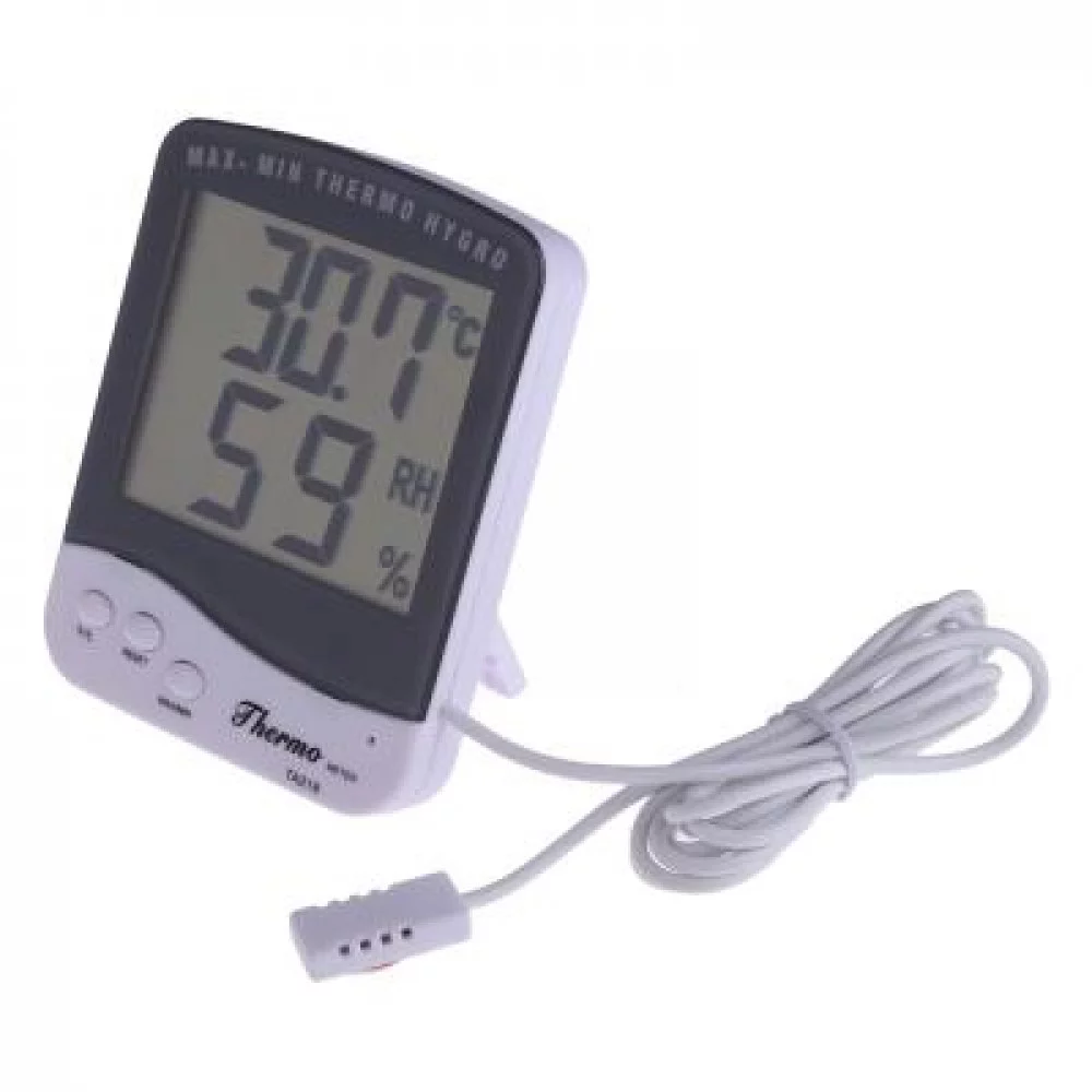 - відкидається задній упір для установки на горизонтальній поверхні / для вертикального кріплення термометра, є отвори в корпусі позаду приладу.