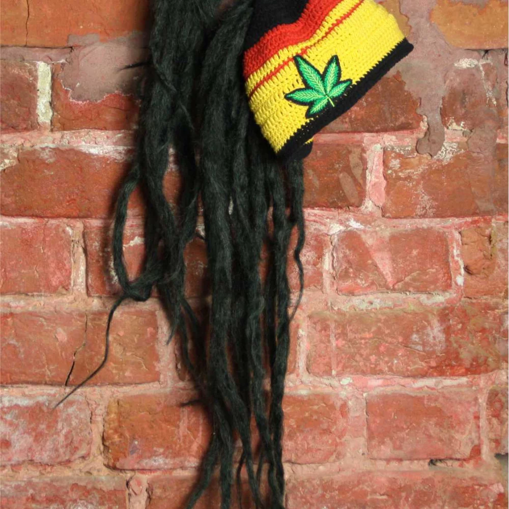 Виконана в класичних кольорах раста - червоному, жовтому та зеленому, прикрашена вишитим листком коноплі та доповнена об’ємними дредами, які створюють унікальний вигляд.