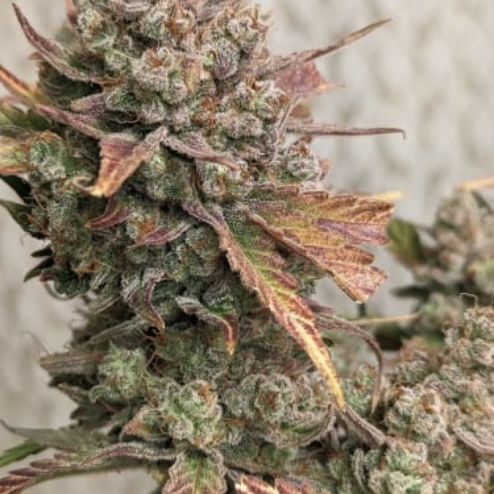 Шишки Cream Cookies Auto виглядають як справжня прикраса гроуруму: щільні, м'ясисті, з гармонійним контрастом яскраво-зелених бутонів, вогненно-помаранчевих маточок і пурпурних штрихів на листі. Благородна «роса» з смоли покриває кожну лусочку товстим, липким шаром.